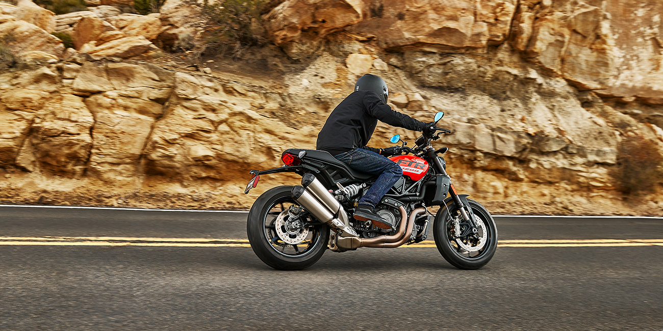 Qu'il tourne au ralenti ou à plein régime, le puissant bicylindre donne tout son caractère à la FTR. N'oubliez pas de monter le volume !